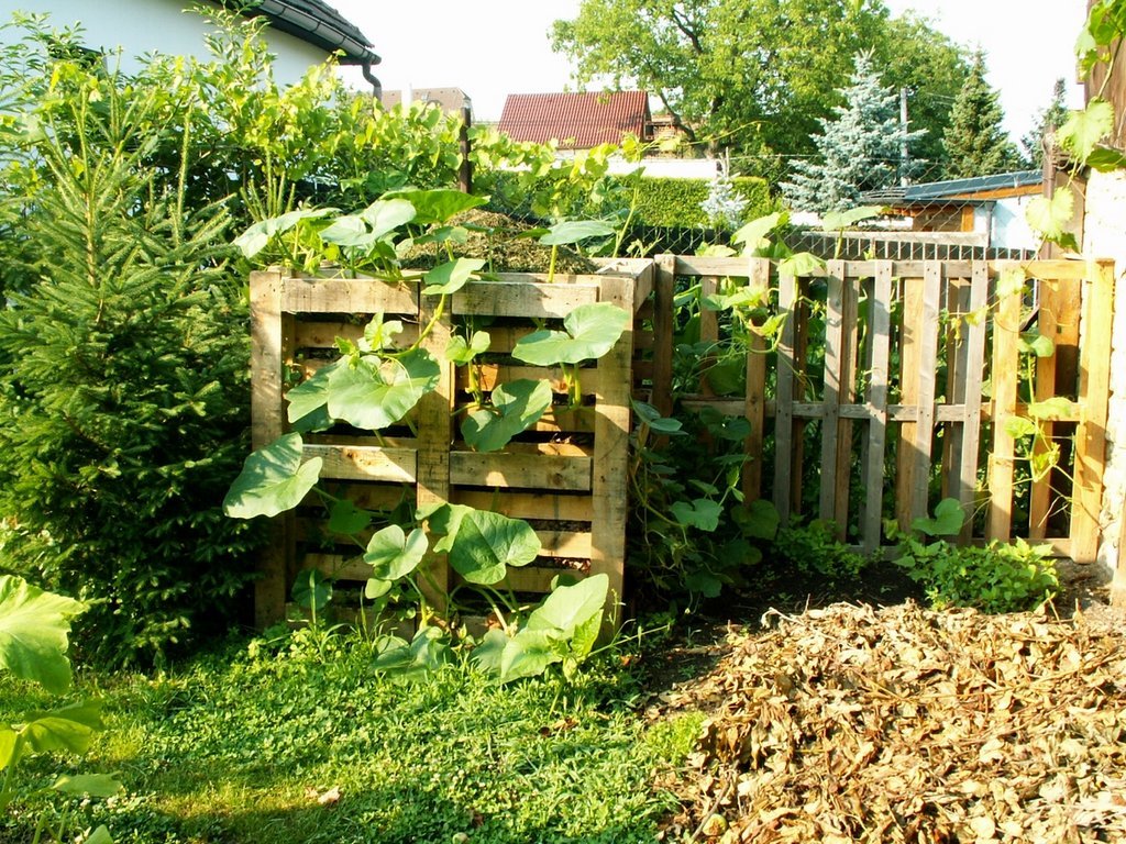 Celé roky sme všetok odpad zo záhrady mali iba voľne na kope, čo ma už hnevalo, pretože to vôbec nevypadalo dobre a vietor roznášal suché časti po okolí. Tak ma napadlo, že by sa dali využiť nepotrebné drevené palety na výrobu kompostu. Vybral som štyri atypické palety rozmerov 110x110 cm. Po spojení skrutkami vznikol vnútorný priestor skoro 1100 litrov a kompostér bol na svete.