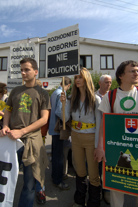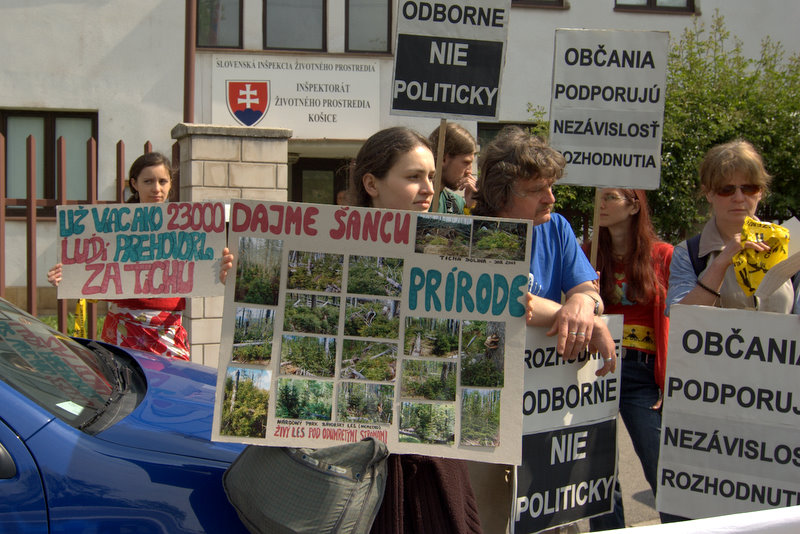 Asi tridsať ochranárov z viacerých organizácií siete EKOFÓRUM dopoludnia protestovalo proti politickému nátlaku na odborníkov, vyšetrujúcich podozrenia z trestných činov poškodenia chránených druhov a ich biotopov v národných prírodných rezerváciách Tichá a Kôprová dolina.